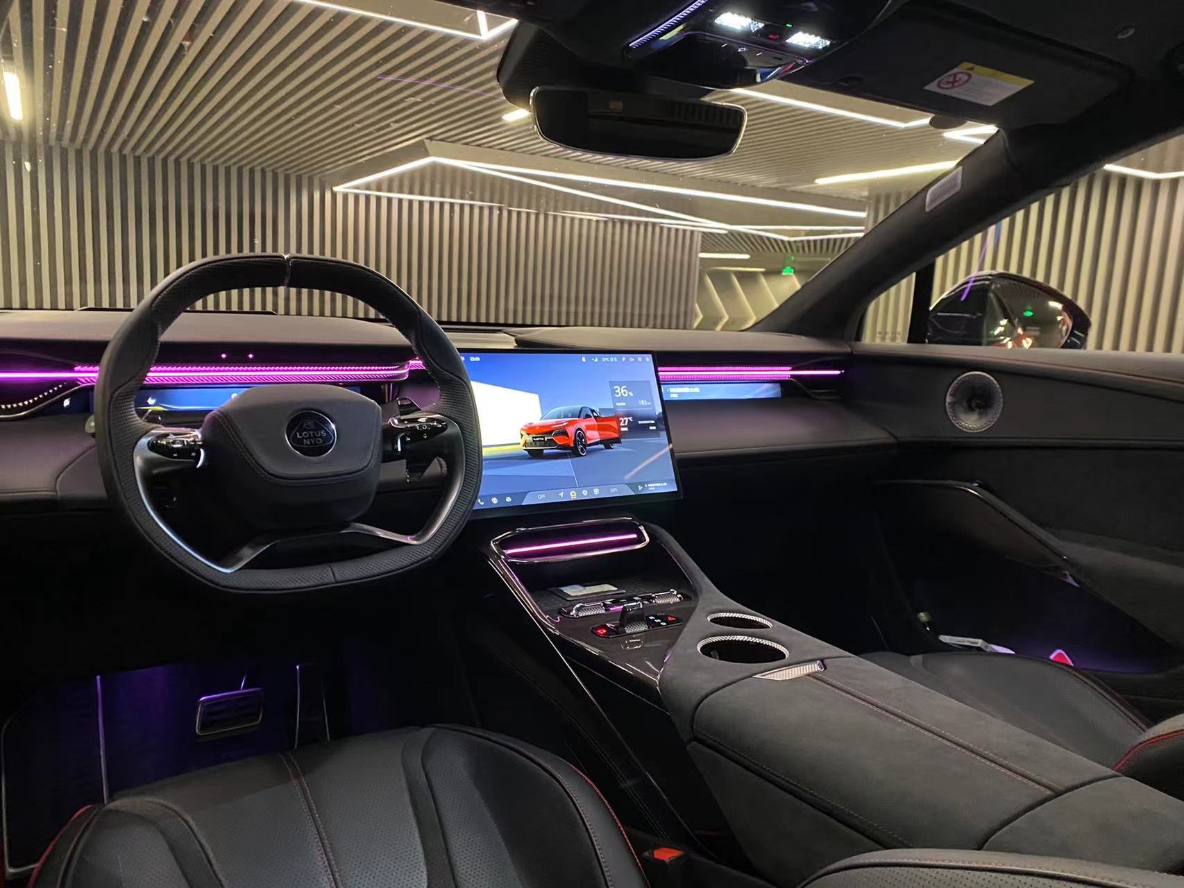 打開無邊框車門進入內(nèi)飾,路特斯Eletre可以說很好的詮釋了什么叫運動與科技感的碰撞,車內(nèi)大量采用了Alcantara與碳纖維的包裹,讓筆者充滿駕駛的欲望。